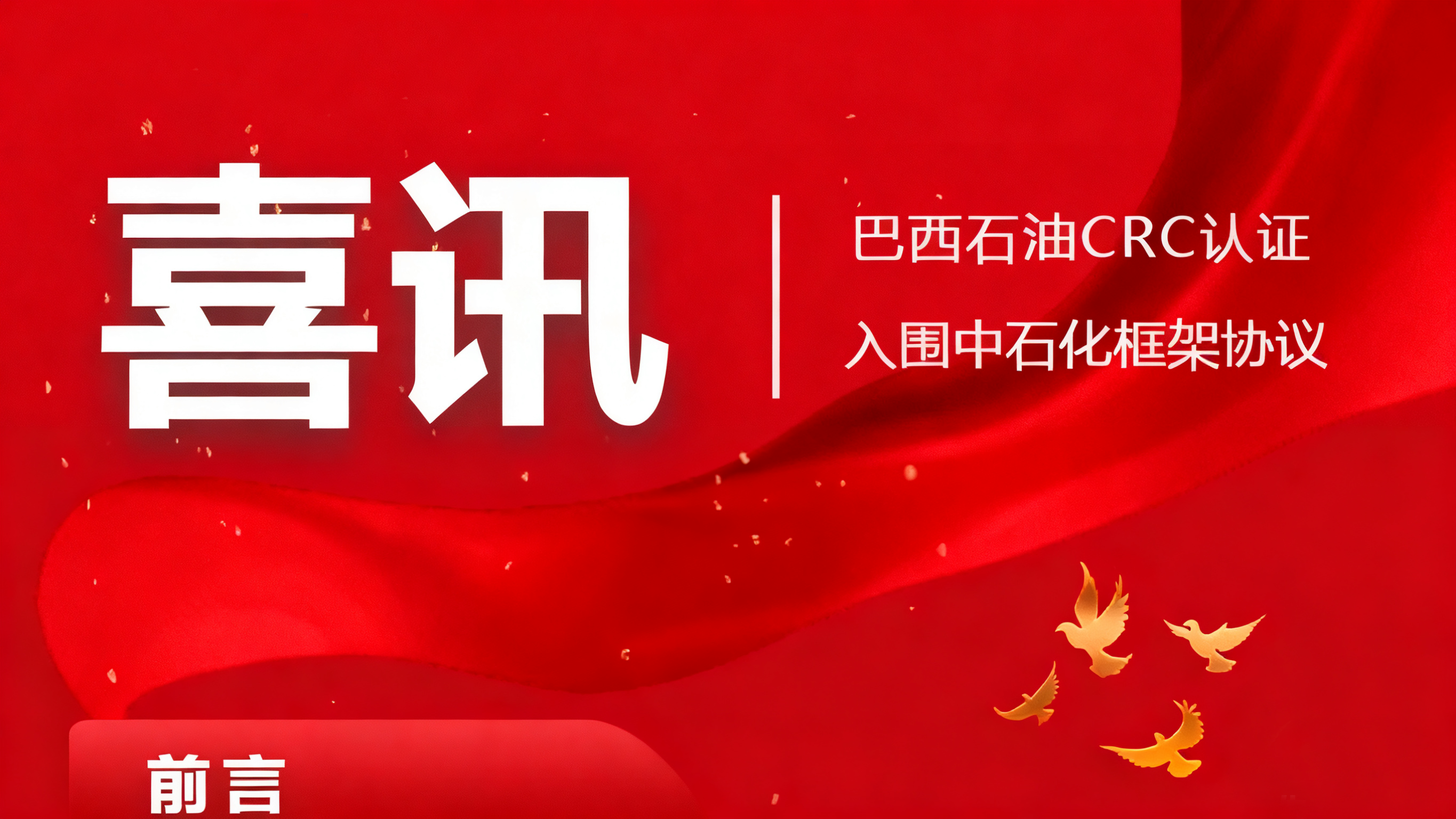 威?;C械有限公司近日接連斬獲國際國內(nèi)兩大高端市場入場券:成功通過巴西CRC認(rèn)證,正式進(jìn)入巴西石油供應(yīng)商體系;同時入圍…
